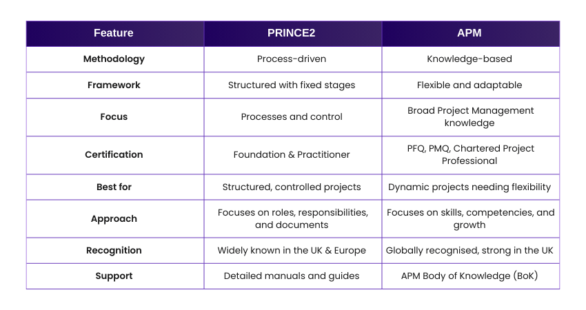 4) Differences Between APM vs PRINCE2: Table Comparison