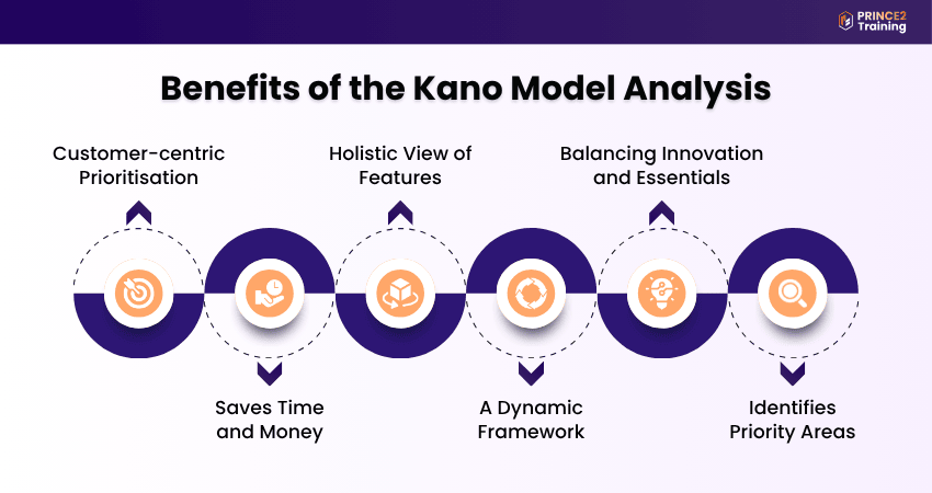 The Kano Model Analysis helps organisations focus on what matters most by linking features to customer satisfaction. It provides a structured, customer-focused approach to decision-making. The key benefits are outlined below: