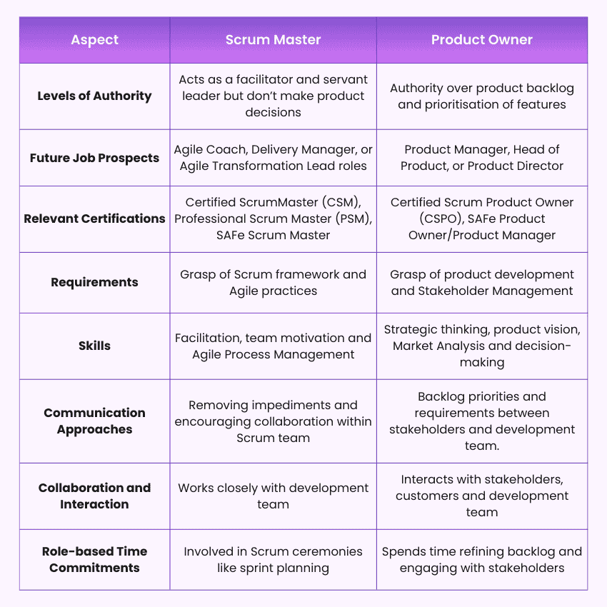 Difference Between Scrum Master and Product Owner