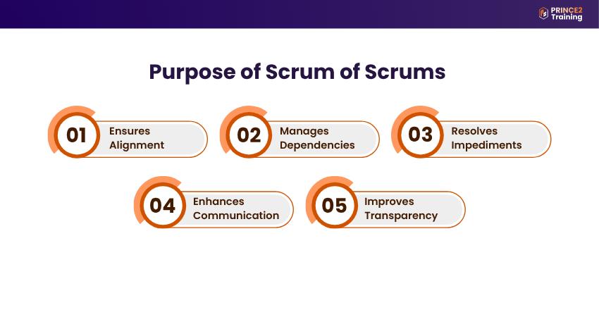 SoS brings together employees from each Scrum team to make sure everyone is working toward the same goals. This shared understanding keeps all teams aligned with the overall vision of the project.